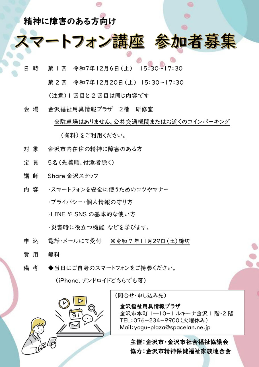 精神に障害のある方の「スマートフォン講座」参加者募集